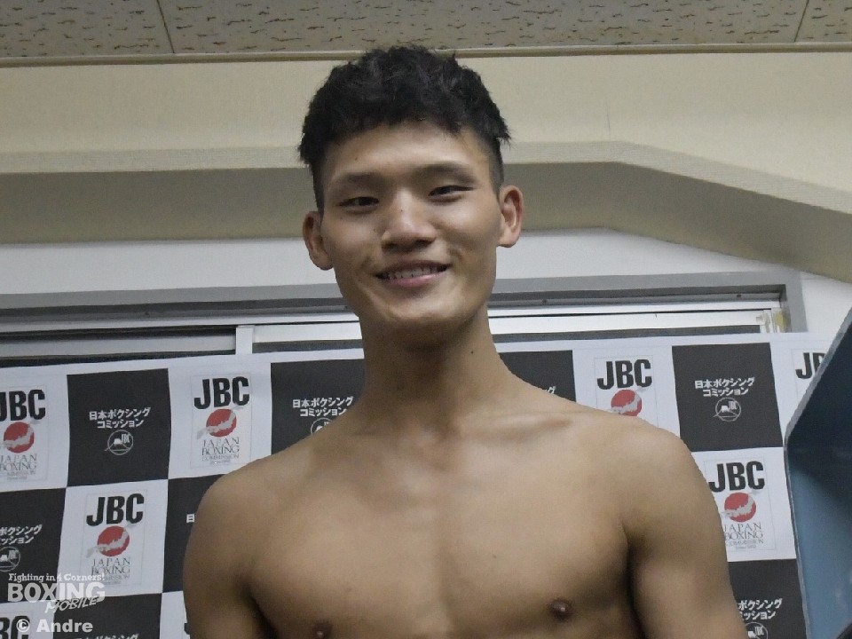 西日本新人王MVPのバンタム級森田翔大(森岡)は200gアンダーの53.3kgでパスすると「明日が楽しみで楽しみで仕方なかったです。相手はパンチがありそうなので、覚悟を持って楽しんで勝ちます」と笑顔をみせた。