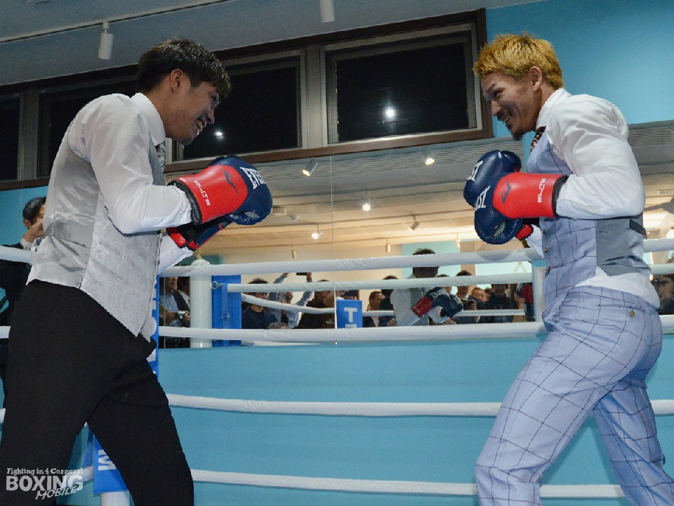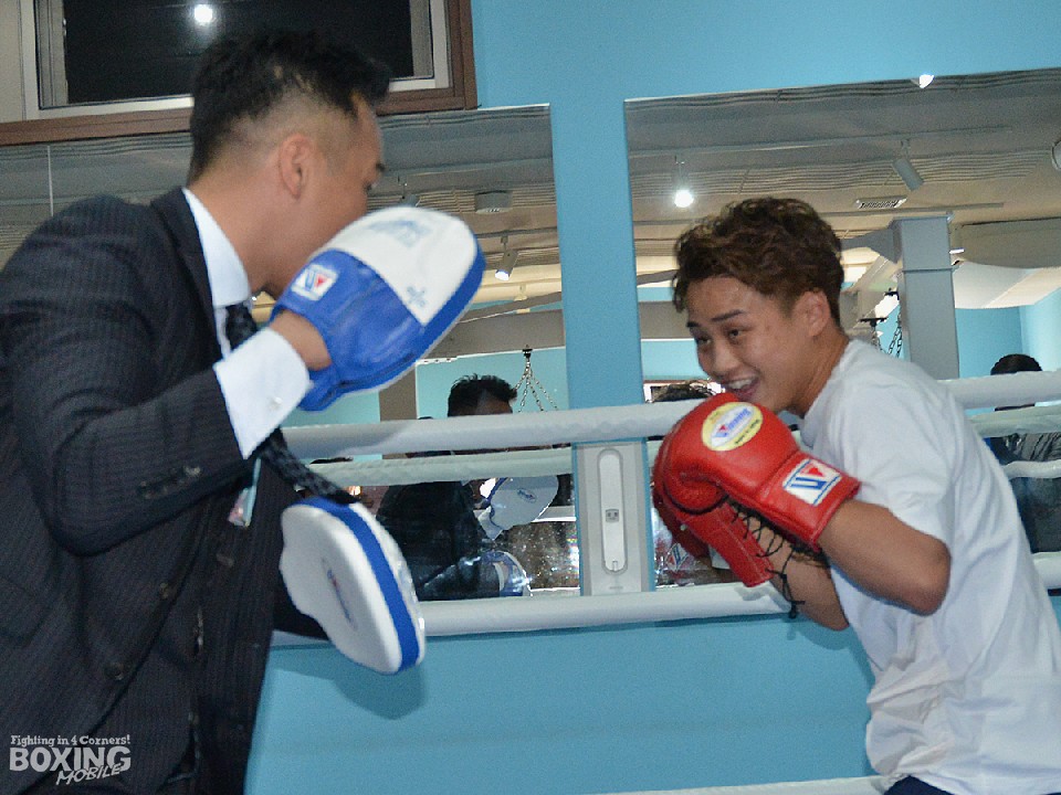 リングではオープンに花を添える形で伊藤とIBF世界スーパーフェザー級3位の尾川堅一(帝拳)によるスパーリングが行われ、ここで実現した待望の対決に来場者から大きな歓声が上がった。さらに下田代表自らがミットを持ち、同門の元東洋太平洋ウエルター級王者亀海喜寛氏、現役世界王者の京口のパンチを受け、トレーナーとしての腕前を披露した。