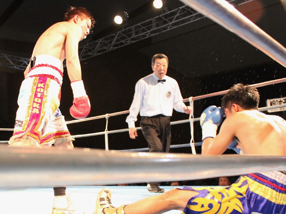 初回から春口がワンツー、左ボディを好打しペースを掌握。被弾したヨップンは右フックを返すが、春口は攻撃の手を緩めずボディにパンチを集めていくと、最後は左ボディをめり込ませキャンバスに沈めた。
