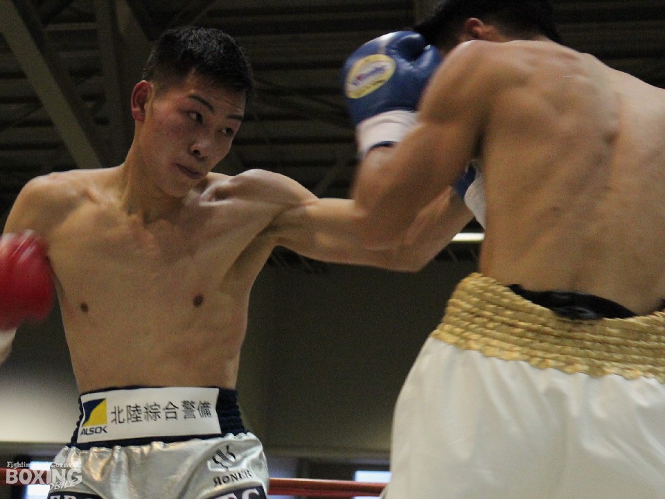 セミファイナルでは2018年全日本スーパーバンタム級新人王で日本同級15位の英洸貴(はなぶさ・ひろき/21=カシミ)がスーパーバンタム級8回戦でカン・バオリン(21=中国)と激突。序盤から英がジャブから強烈な左ボディ、さらには多彩なコンビネーションを披露しポイントをピックアップし続けた。