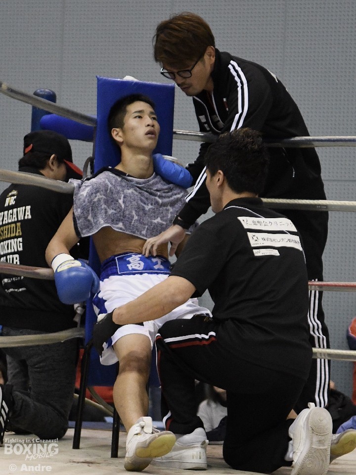 鶴海は、足でリズムを作ると接近してコンビネーションを当てた。対して、横山は鶴海の打ち終わりにカウンターを狙った。2ラウンド中盤、鶴海の右で横山がダウン。最終ラウンド、被弾覚悟で前に出た横山だが、逆転には至らず。判定で鶴海が勝利を収めた。