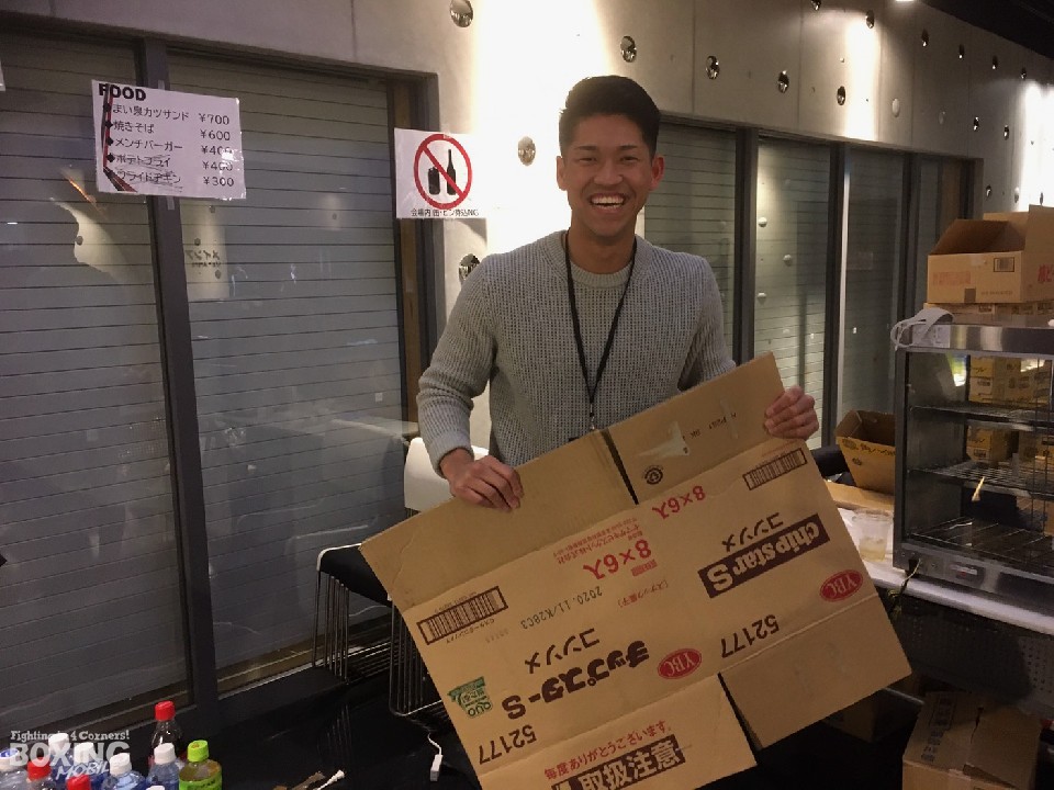 ワタナベジムに所属する日本フェザー級7位の佐々木蓮(24)、山本祥吾(27)、山口怜恩(19)の3選手は大晦日も大忙し。トリプル世界戦が開催された大田区総合体育館で3人は、朝の9時から物販のアルバイトで汗を流していた。全試合日程が終わると「忙しく働かせてもらいました」と笑顔。この日はメインイベントのWBO世界スーパーフライ級チャンピオン・井岡一翔(Reason大貴)の防衛戦を少し見ただけだった。