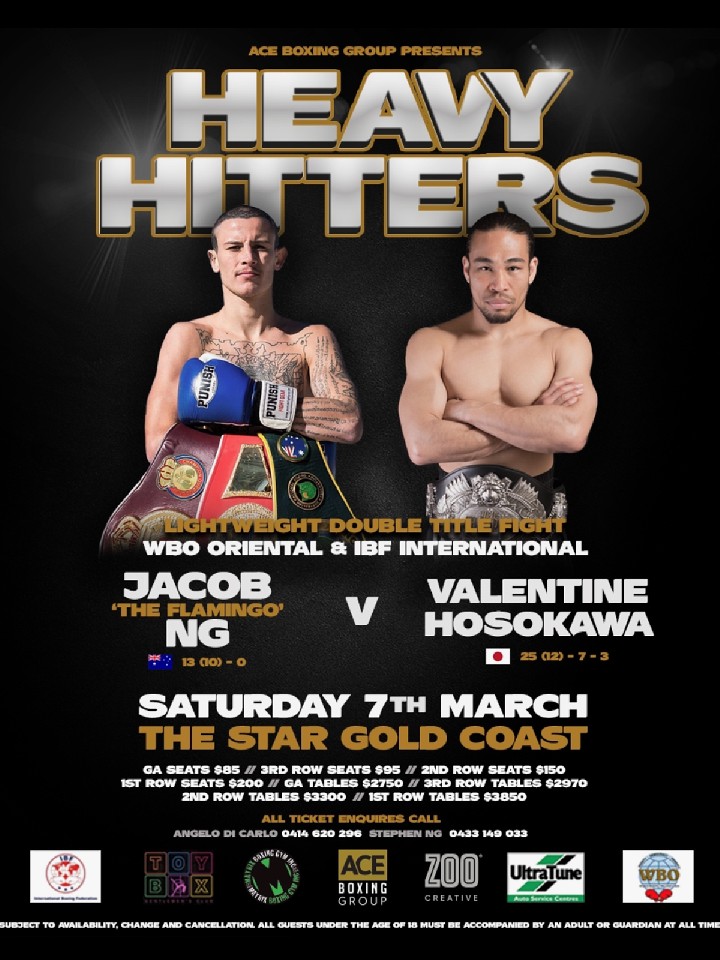前日本スーパーライト級王者の細川バレンタイン(38=角海老宝石)が3月7日、オーストラリア・ゴールドコーストでWBOオリエンタル・IBFインターナショナル・ライト級王者のジェイコブNg(25=豪)に挑戦することが決まった。この試合は「Epicentre TV」でPPVでLIVE配信される。