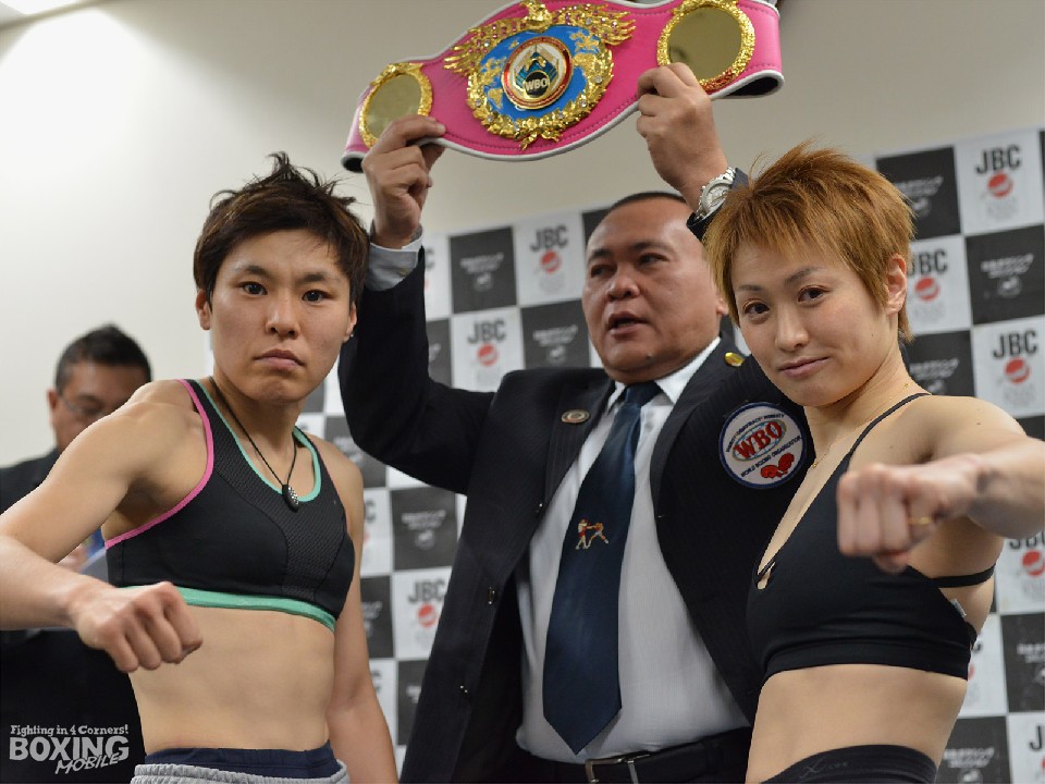 WBO(世界ボクシング機構)女子ミニマム級王座決定戦の調印式と前日計量が27日、都内の日本ボクシングコミッション(JBC)本部事務局で行われ、元WBA・IBF・WBO女子世界ミニマム級王者の多田悦子(38=真正)と元WBA女子世界アトム級王者の宮尾綾香(36=ワタナベ)が会見で意気込みを語った。