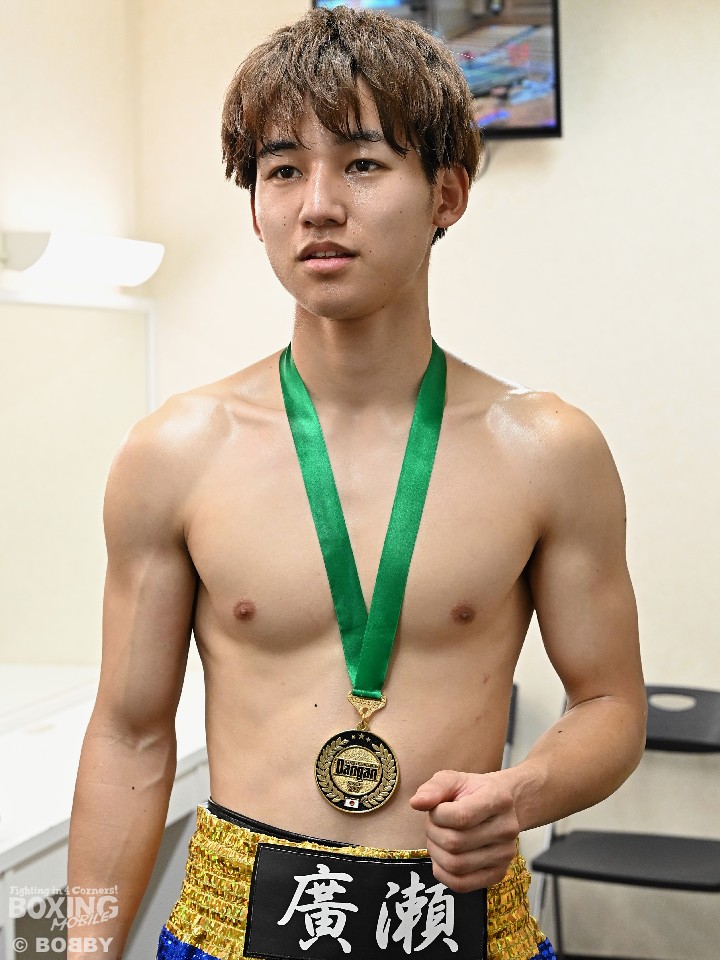 控室に戻った廣瀬は「落ち着いて試合をすることができたが、余裕を持ちすぎて危ない場面もあった。単発になってしまったのでもっとジャブを出していきたい」と冷静に試合を振り返った。