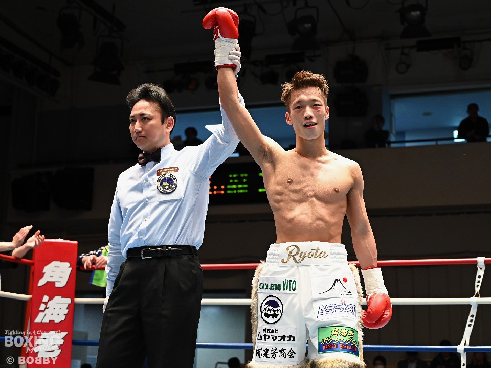 ジャブを飛ばしなら距離を測った山内だが、ボーの右ストレートを浴びてヒヤリとさせた。しかし、2回に打ち合いに持ち込むと左ボディーから右フックを決めてダウンを演出。フィリピンの新鋭をキャンバスに沈めた。