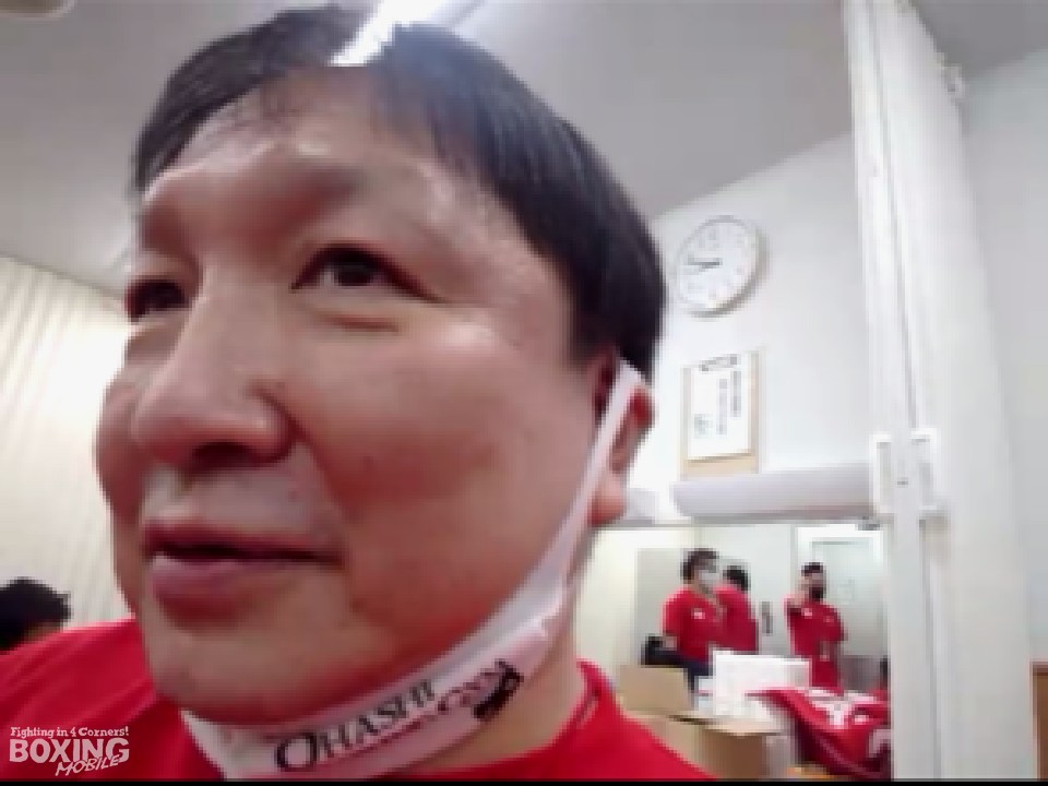 会見に同席した大橋秀行会長は「左に合わせる渾身の右フックは、アマチュア出身の選手がやられる一番のパターンなので、なんとなく狙ってくると思った。ボディ攻撃も左フックからの右アッパーも良かったのであれ(ダウンシーン)がなければ100点だった」と感想を語った。