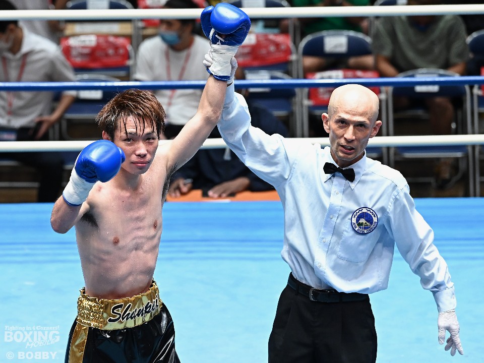 「(3回のダウンは)効いてはいないが、踏ん張りがきかなかった。ポイントは気にせずに戦った。今日は左がよく当たった」と納得の表情だった。