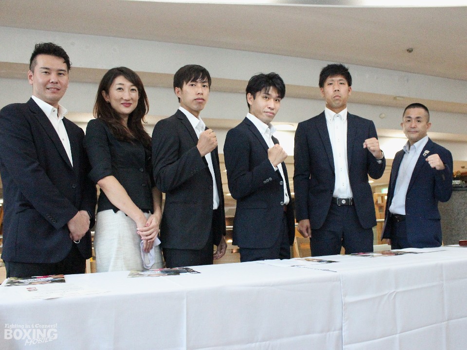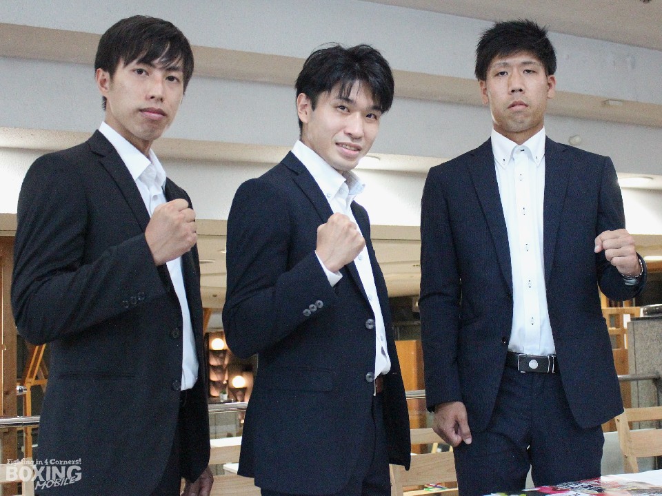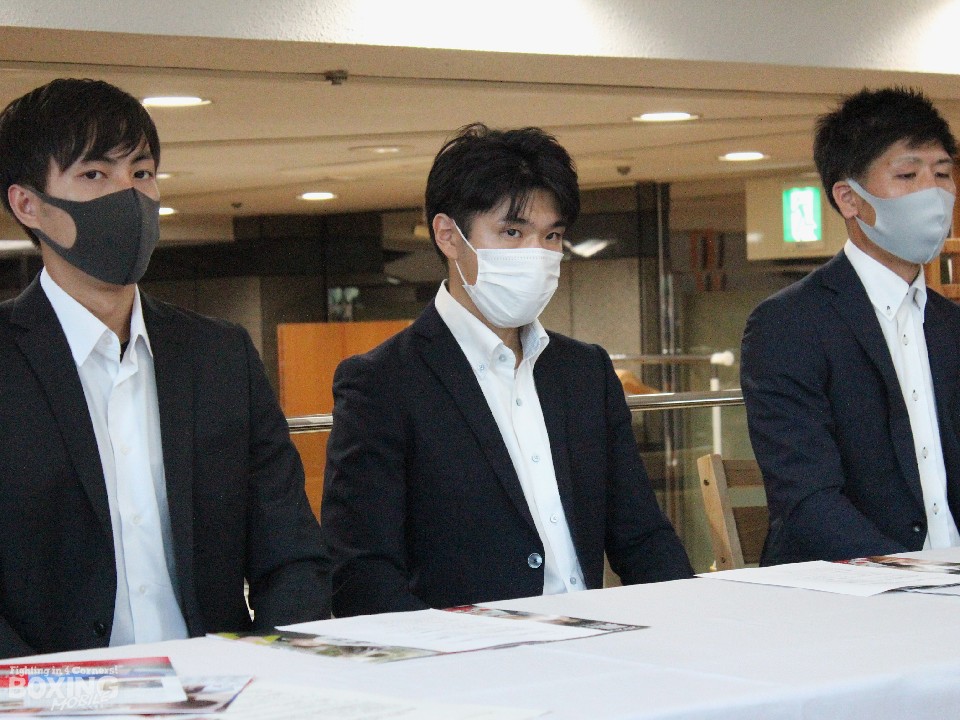 また、会見には同門の白崎隼樹(27)と大石真之(25)も出席した。白崎はアマチュア58戦33勝(3RSC)25敗、国体ライトウェルター級5位の実績を残しプロに転向。10月にB級(6回戦)テストを受けて合格すれば年内にデビュー戦を行う。日体大卒業後は故郷の福井県でボクシングを続け国体で引退する予定だったが「満足する結果を出すことが出来なかった」と1年のブランクを経て、知人の紹介で今年の4月にジムに入門した。