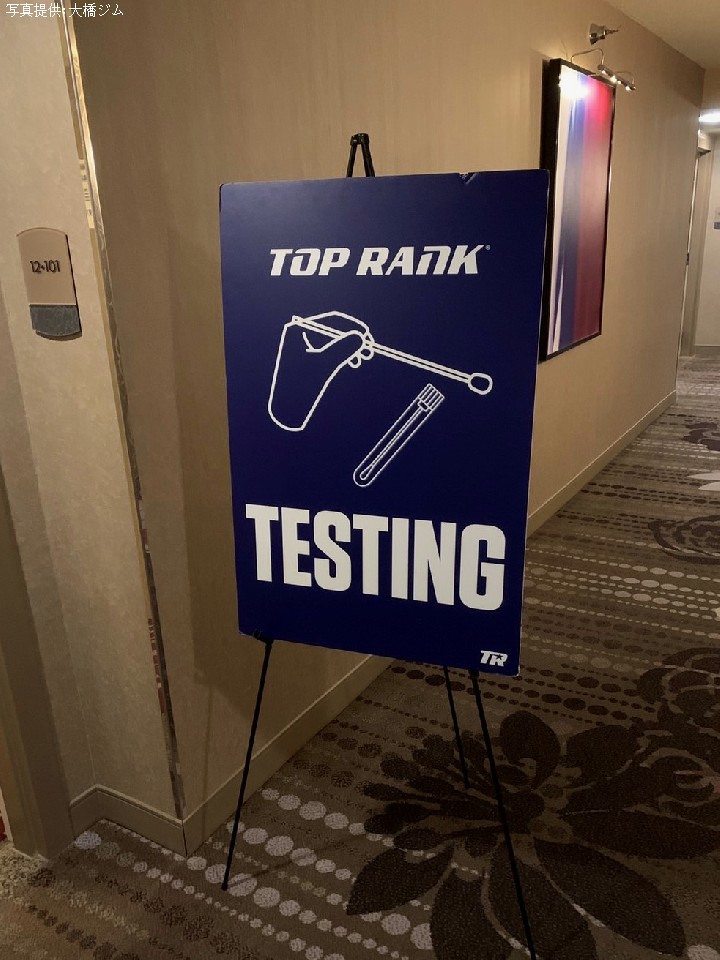 午後9時に大橋秀行会長をはじめ、井上陣営と平岡アンディ陣営が合流。揃って渡米2度目となるPCR検査を受けた。検査後は翌朝の結果が出るまで各自、ホテルの部屋からは一歩も出ることができない。