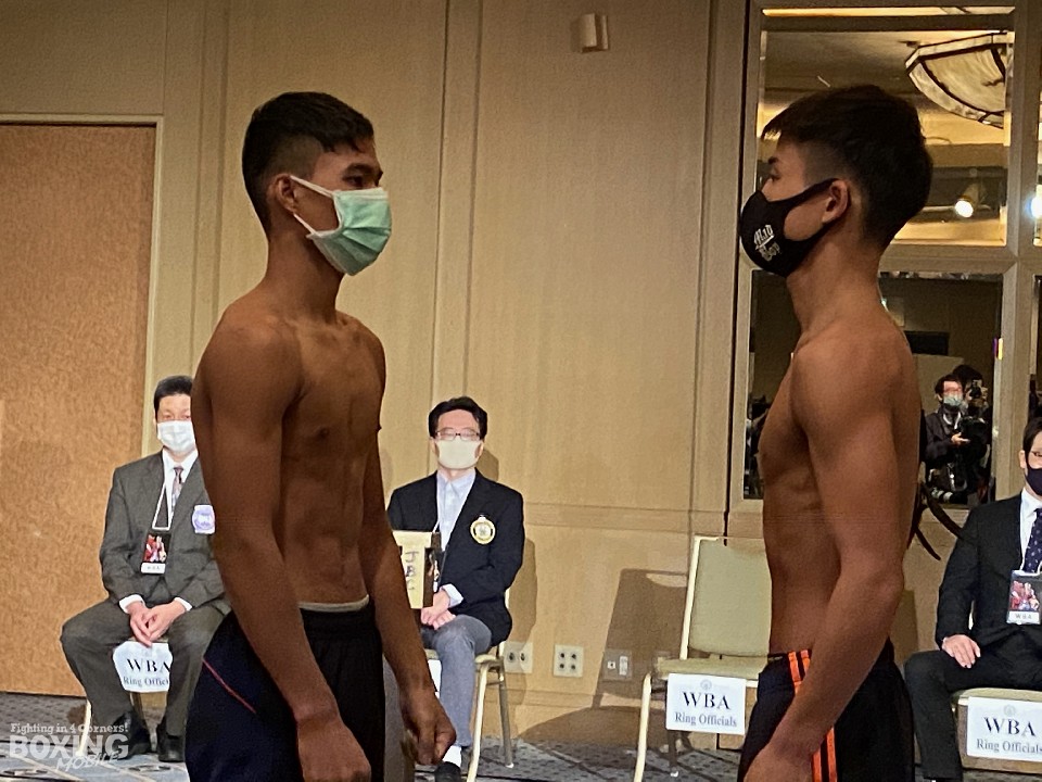 一方、世界初挑戦のタノンサックは「最高の状態に仕上げた。母国でたくさん練習してきたし手厚いサポートも受けている。明日は絶対に勝つ」と静かに闘志を燃やした。タノンサックは200gアンダーの48.7kgでクリア。足早に会場を後にして明日の決戦に備える。