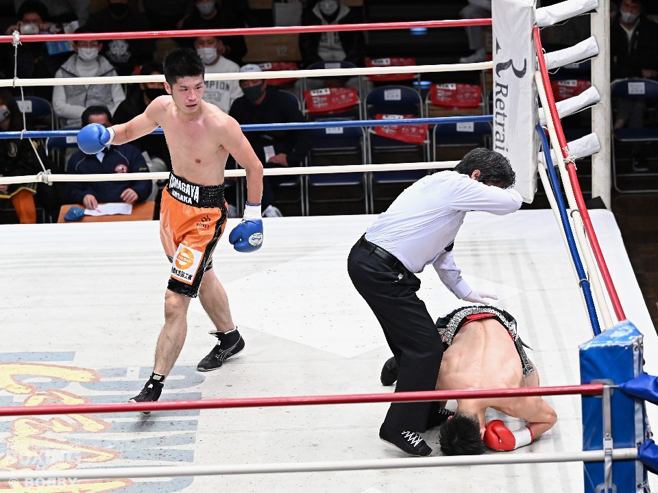 サウスポー同士による一戦は、2ラウンドに薮アが左ストレートでダウンを奪うと終始攻め続けて判定勝ちした。