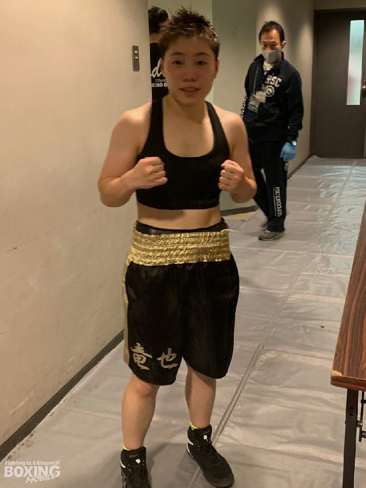 会場に観戦にきた竜也氏は「試合を見るのが怖かったが、今日は良い試合をしたと思う。貸したトランクスは自分が新人王戦に出場した時のものです」と妹の勝利に笑顔を見せた。