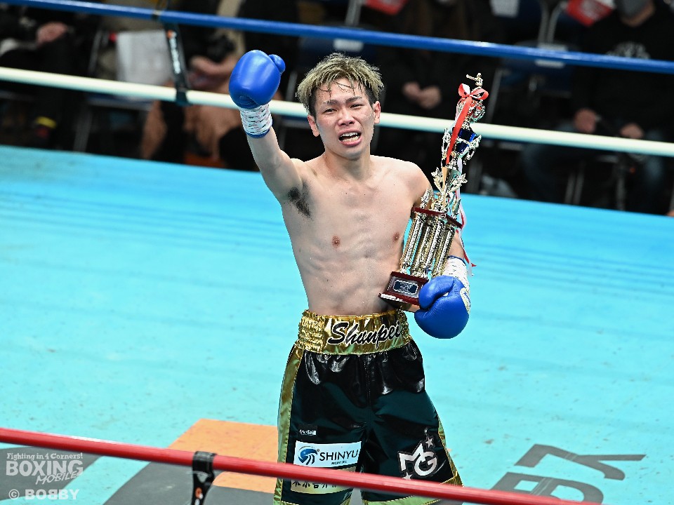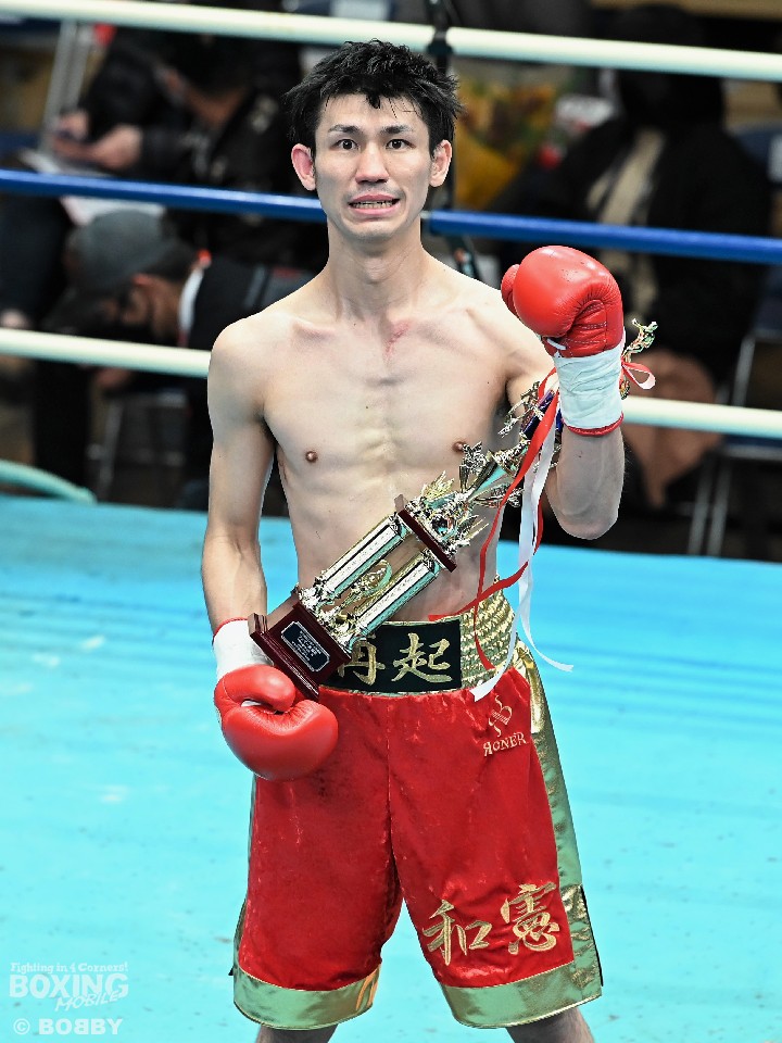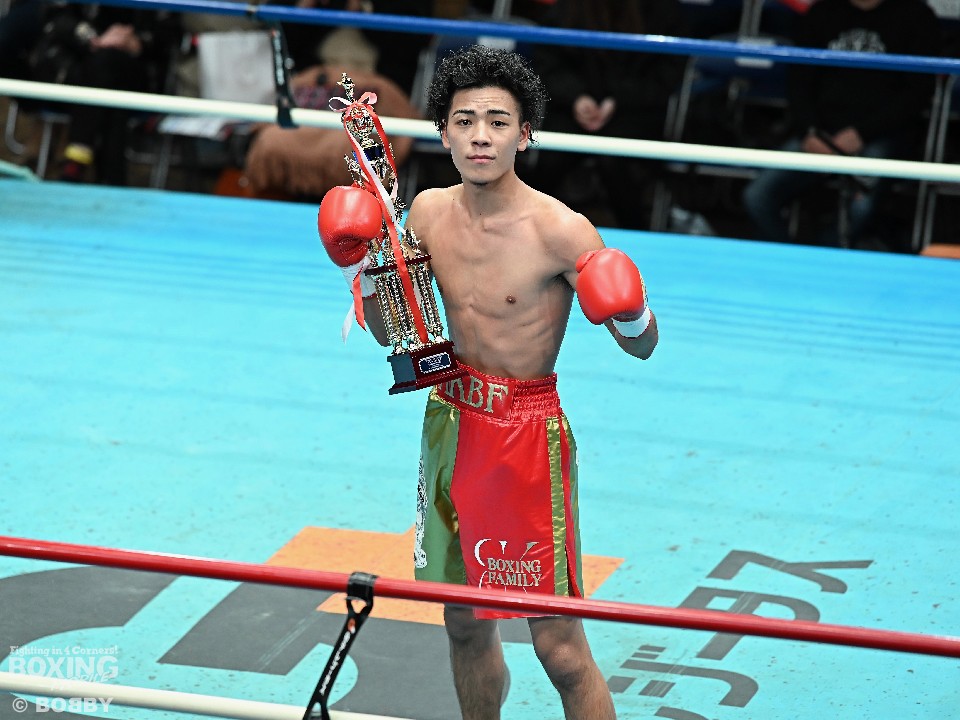 「三賞のどれかに絡められたらと思っていたので、名前を呼ばれた時はうれしかった。前の試合(スーパーフライ級)が逆転KO勝ちだったので、この試合が(MVPは)固いなと思っていた。デビュー戦は動きが硬くてしっくりこなかったので今日は内容的には満足している。次戦はもっと力を抜いてきれいに倒したい。全日本新人王を獲って日本ランキングに入ります」