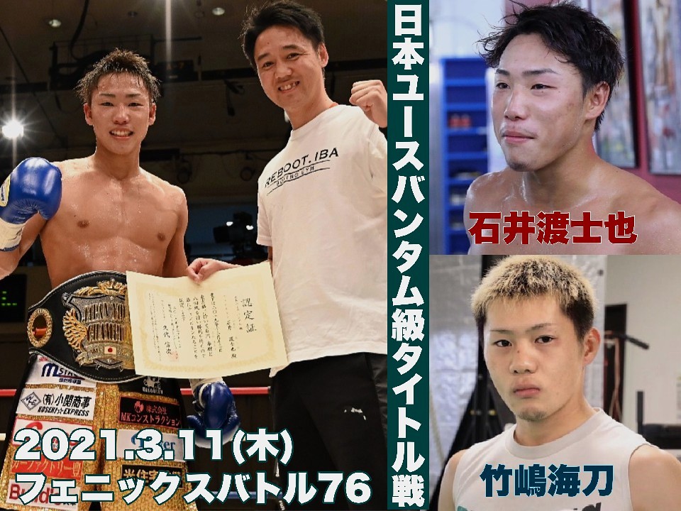 すでに発表されている桑原拓(25=大橋)と湊義生(22=JM加古川)による東西ホープ対決、さらに日本ユース・バンタム級タイトルマッチ、王者の石井渡士也(19=REBOOT.IBA)vs挑戦者の竹嶋海刀(22=勝輝)戦も決まった。