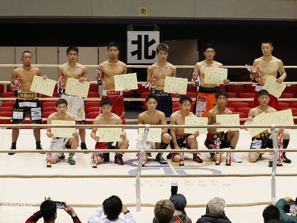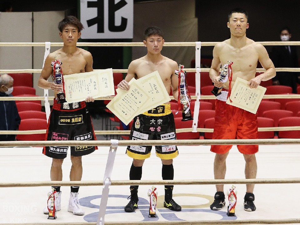 MVP(最優秀選手賞)は、スーパーバンタム級の福永宇宙(23=黒潮)が受賞した。安西蓮(20=岡崎)と対戦した福永は、初回から激しい打撃戦を繰り広げたが、3回にボディブローで動きを止めると右ストレートを決めてダウンを先取。再開後はパンチをまとめてレフェリーストップに持ち込んだ。
