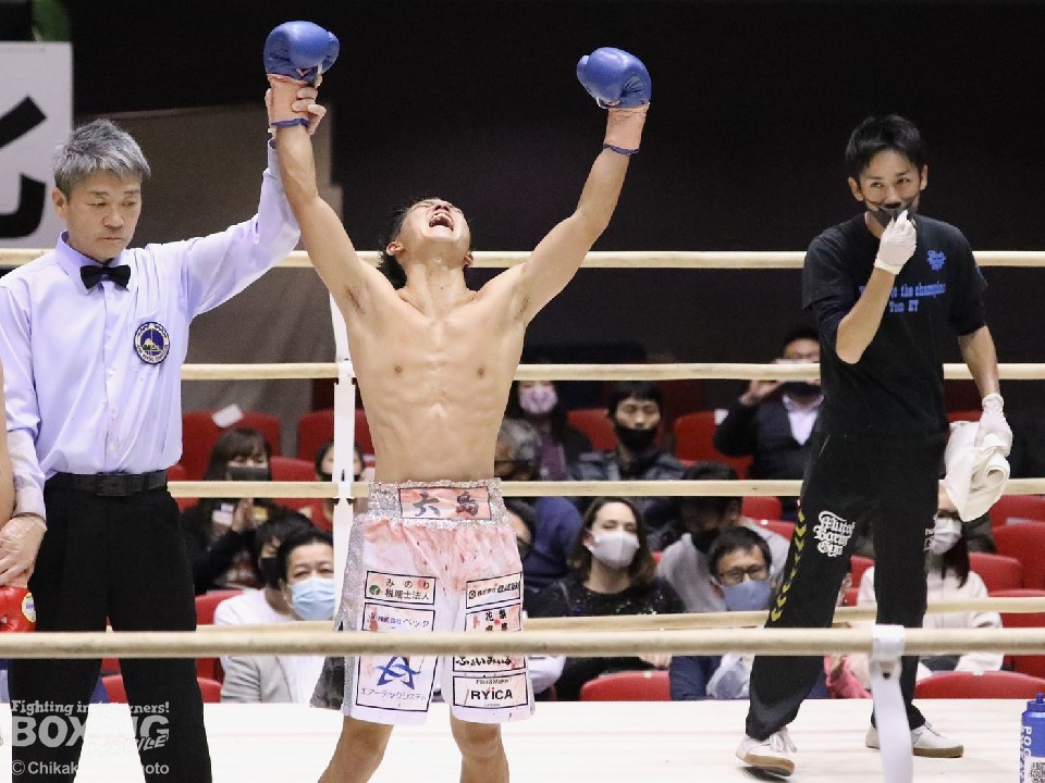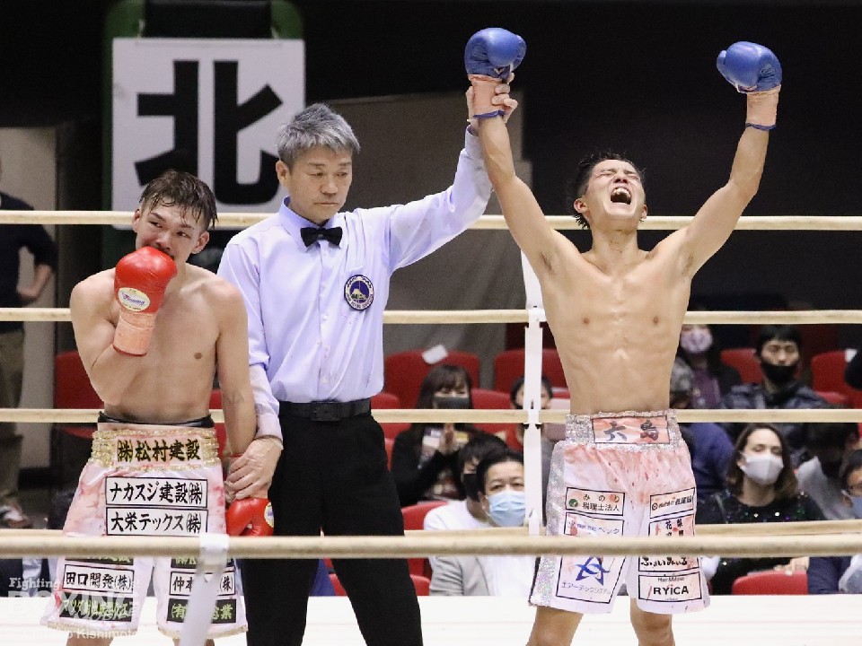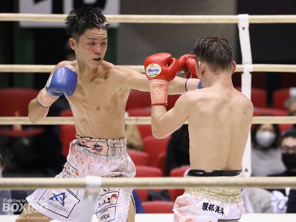 元日本スーパーフライ級王者の奥本貴之(29=グリーンツダ)と日本同級10位の古谷昭男(22=六島)が27日、エディオンアリーナ大阪(大阪府立体育会館・第2競技場)で開催された「CRASH BOXING.21」のセミファイナル、53.0kg契約8回戦で激突した。