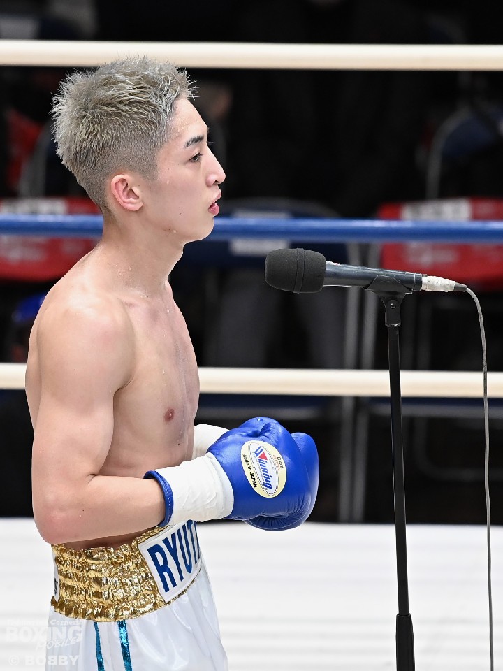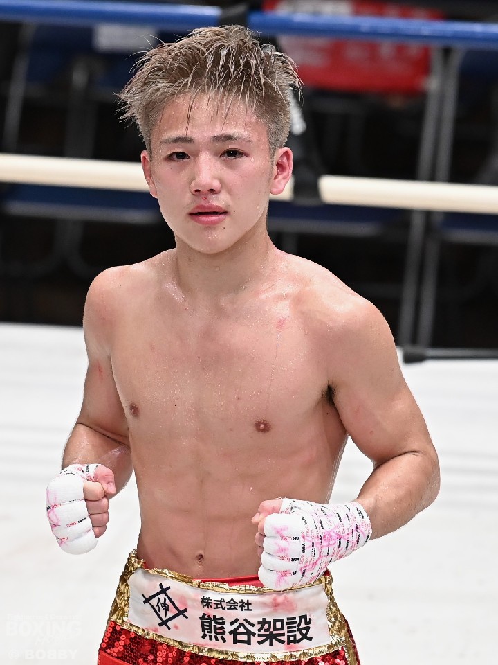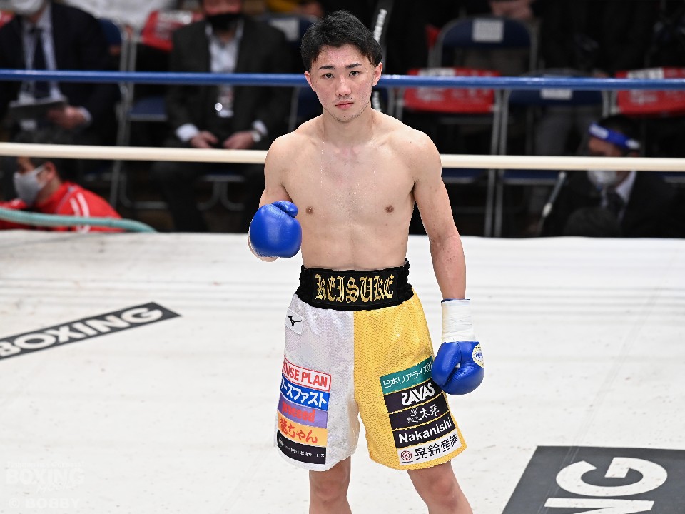 元日本・OPBF東洋太平洋フェザー級王者松本好二氏の長男・松本圭佑(21=大橋)は、58.0kg契約6回戦でベジータ石川(34=折尾)と対戦した。立ち上がりこそサウスポー石川の左を浴びてヒヤリとさせたが、その後は冷静に組み立てて右ストレートでダウンを先取。再開後は連打でフィニッシュした。