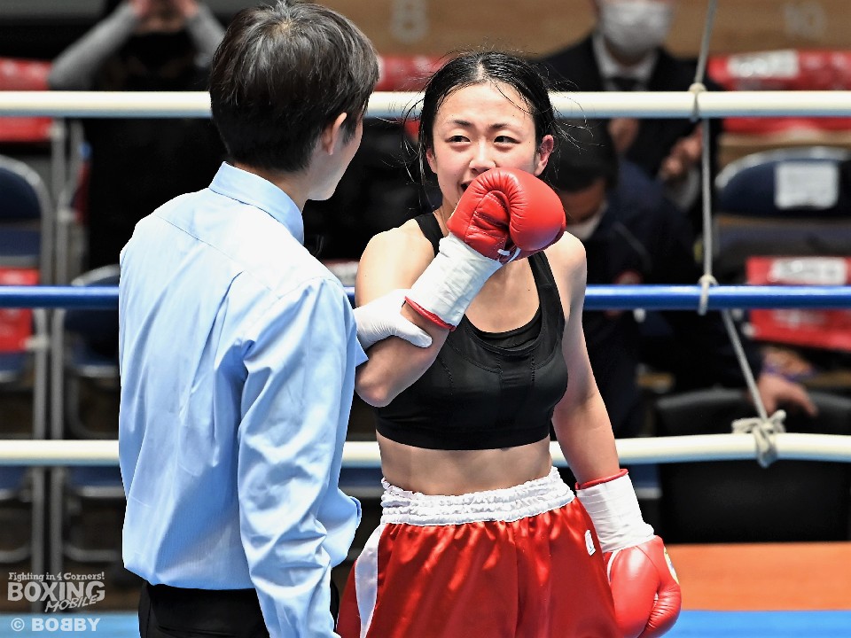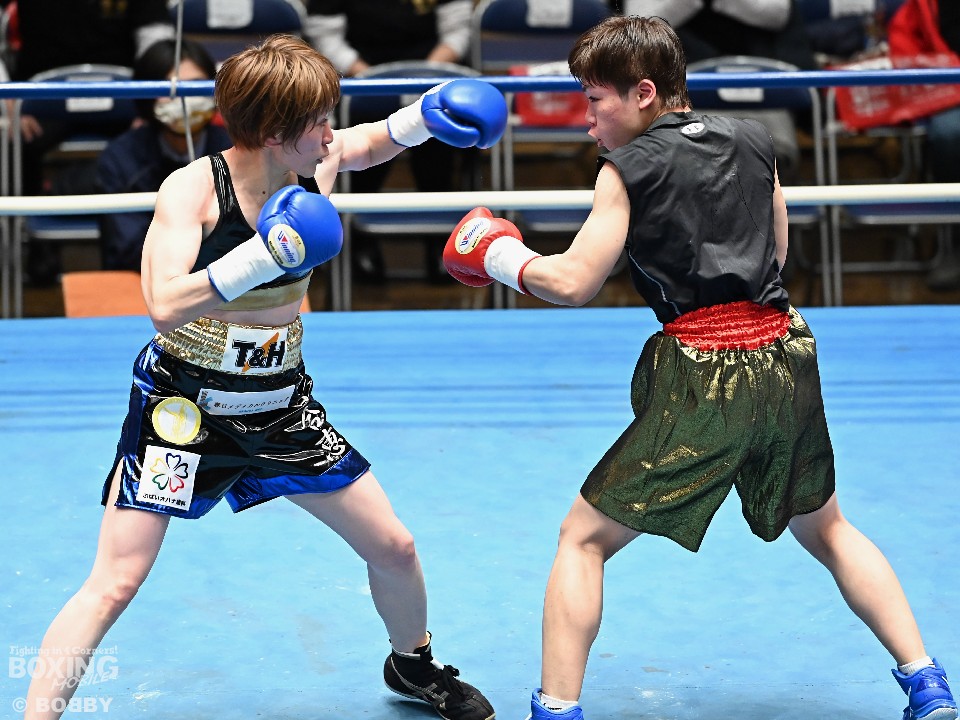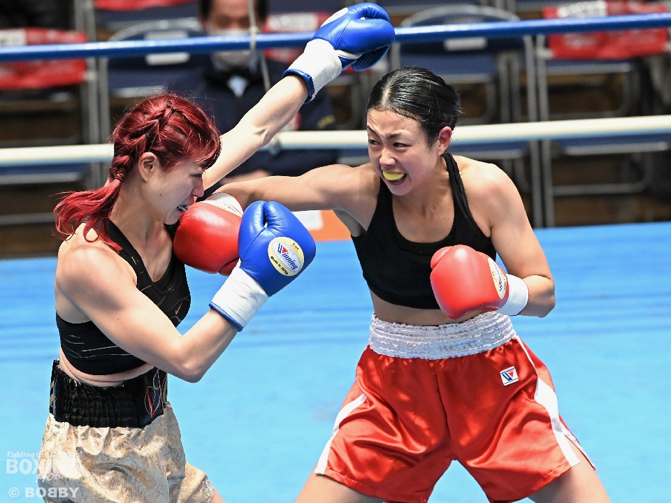 第7試合52.5kg契約4回戦では日本女子フライ級3位の山家七恵(29=中野サイトウ)と椙元愛(36=一力)が対戦した。