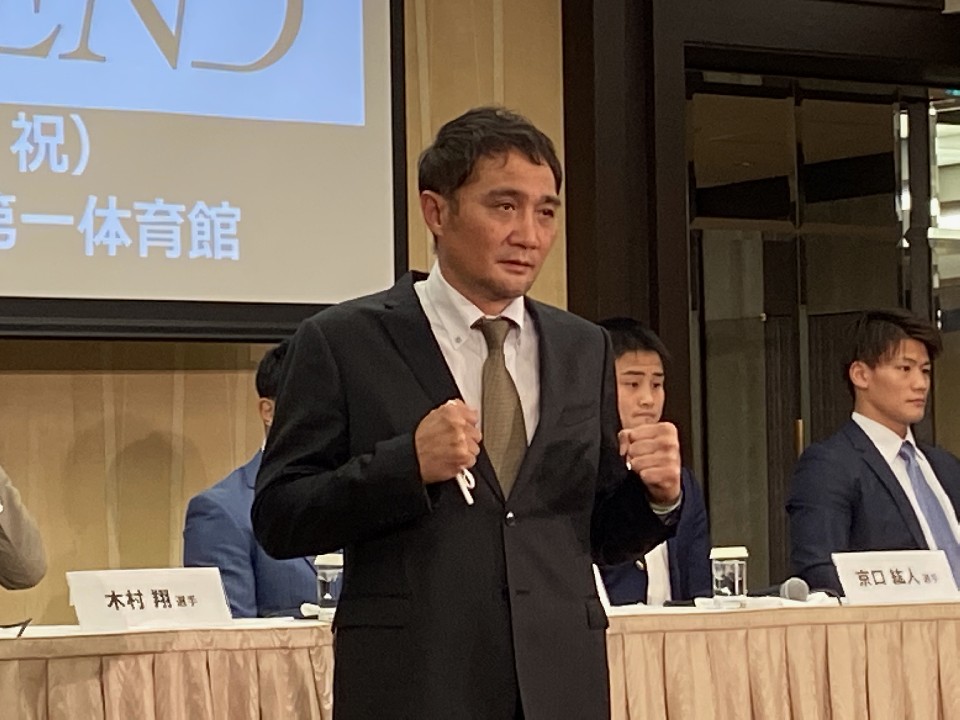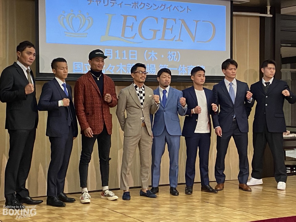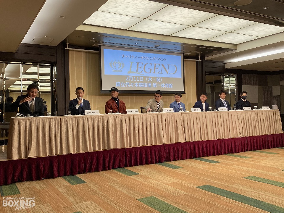 2月11日(木・祝)に開催されるボクシングチャリティーイベント「LEGEND 」(代々木第一体育館)の対戦カード発表記者会見が4日、都内のホテルで行われた。会見に先立って、今回も前回と同様に報道関係者全員のPCR検査が行われた。3月13日には米国デビュー戦を迎える京口紘人(27=ワタナベ)は八重樫東(37=大橋→引退)と拳を交える。この2人は試合はもちろん、スパーリングでも手合わせしたことがないとのことで「2月11日は楽しみたい」と京口本人もエキシビジョンを心待ちとした。これには八重樫も「京口君の練習相手になるように調整してまいります」と応えた。昨年9月に引退した後、現在は大橋ジムでトレーナーを務める「激闘王」だが、建国記念日のイベントに向けて現役選手らと走り込み合宿を決行!「僕は話で盛り上げるのは出来ないので、スパーリングで盛り上げたい」と述べた。