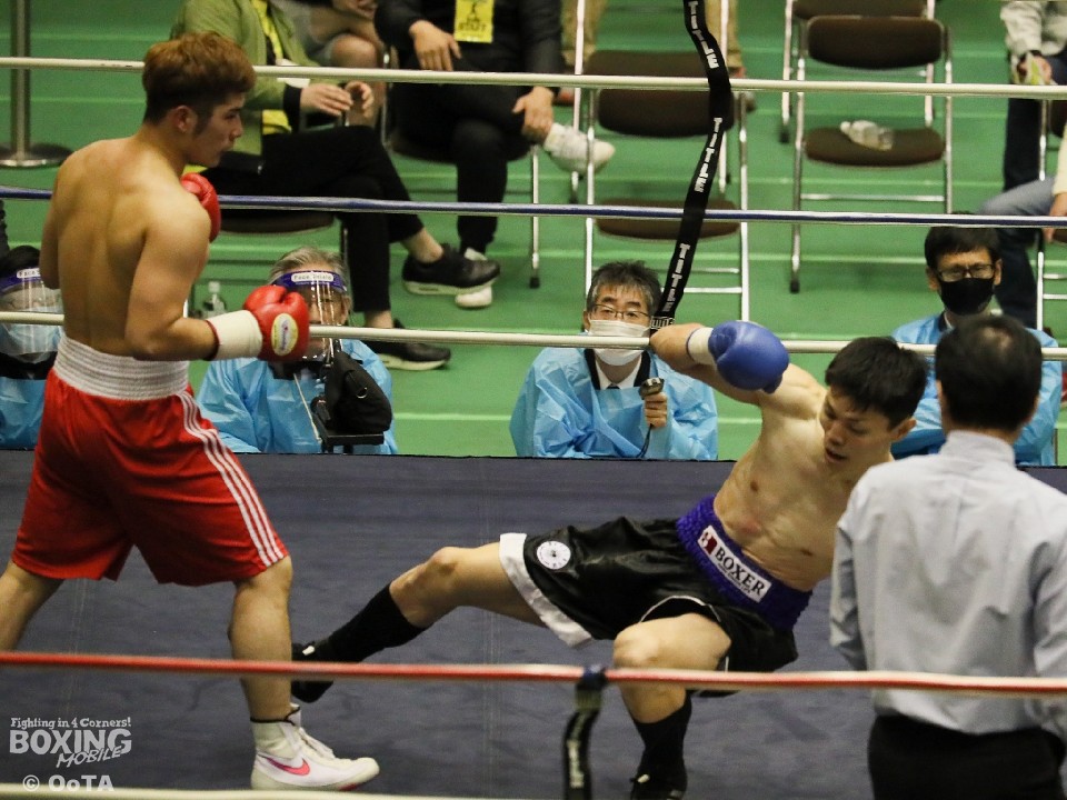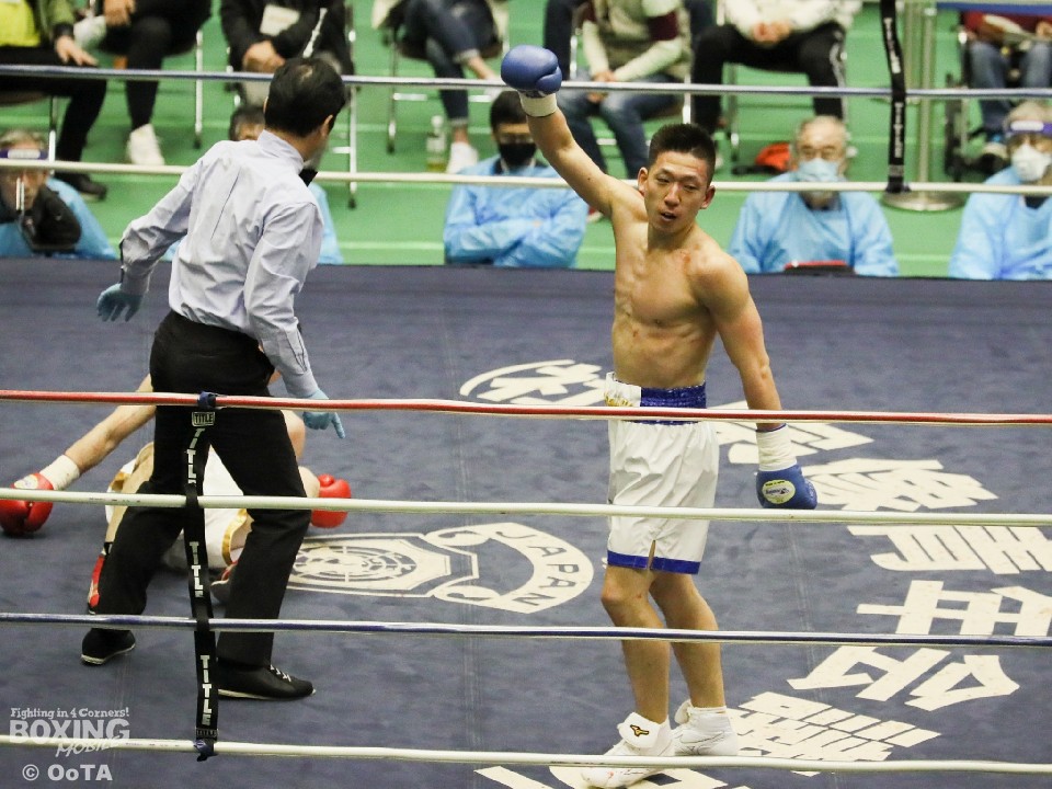 初回は、長身サウスポーの木寺がジャブを軸に丁寧な試合運びを見せていたが、2回になると安藤がプレスをかけて反撃。左ストレートでダウンを奪うと再開後、再び左ストレートでキャンバスに沈めた。