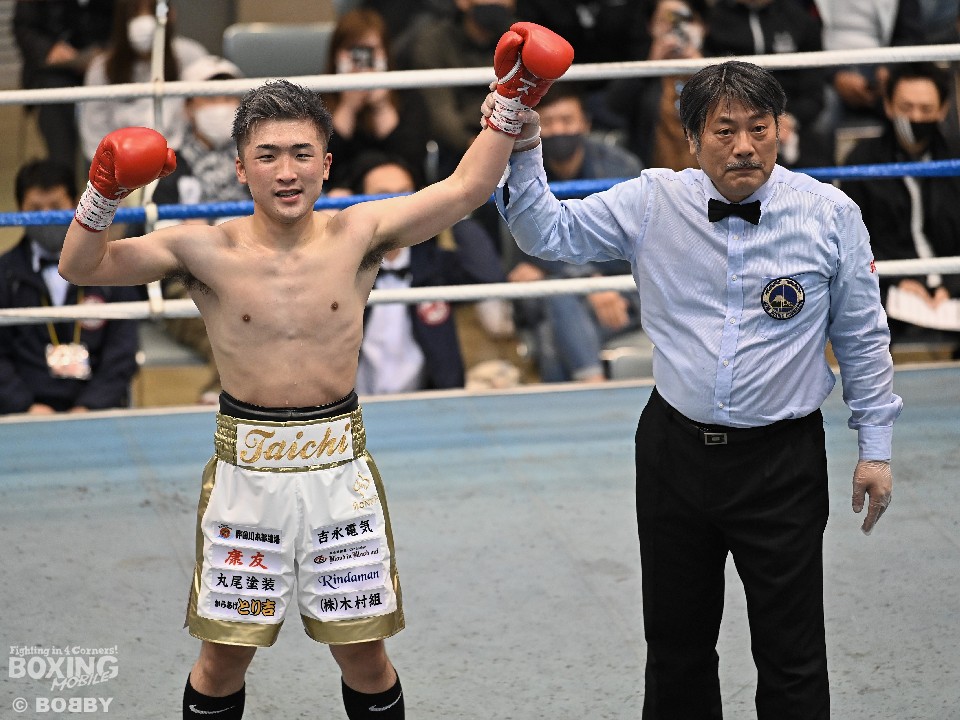 最終第8試合50.0s契約4回戦では、2020年度中日本フライ級新人王の鈴木尊虎(22=トコナメ)と松浦克巳(18=岡崎)が対戦した。序盤は、松浦のジャブに手を焼いた鈴木だったが、2回になるとプレスをかけてボディ攻撃で応戦。打ち合いに持ち込むと回転力を活かした連打でポイントを連取した。