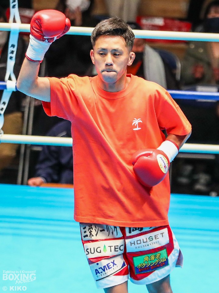 粉川が、ベテランならではの巧みな試合運びを見せて勝利した。小坂の右カウンターを浴びた粉川だが、距離を詰めて豊富な手数で対抗。採点の難しいラウンドが続いたが、終盤に左ボディを突き刺した粉川が明確にポイントを奪った。