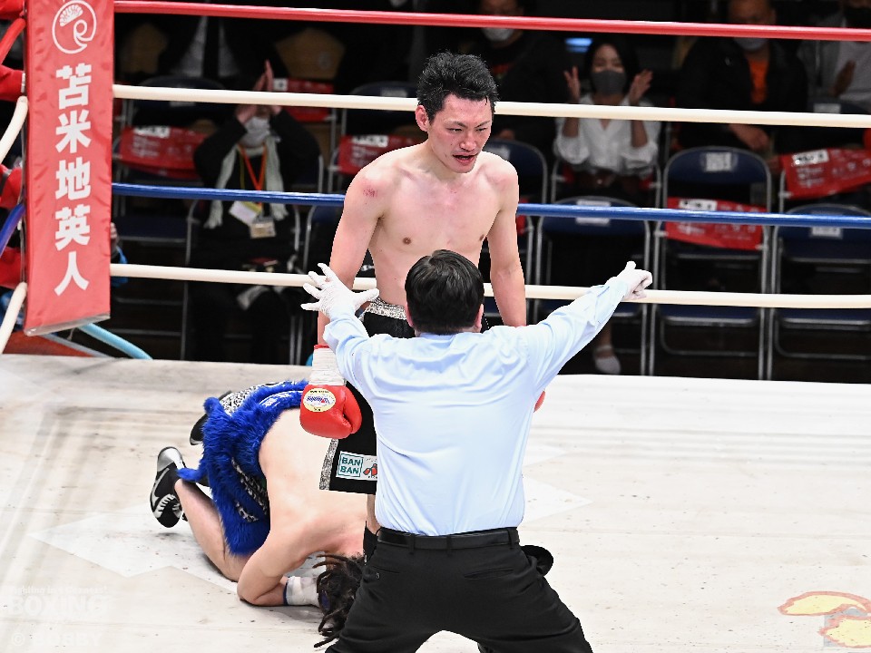 日野が、日本ランカーの力を存分に示した。前に出てくる大保に対し、サウスポー日野はジャブでコントロールしながらワンツーを好打。冷静な試合運びでペースを握ると、7回に左ボディアッパーで10カウントを聞かせた。