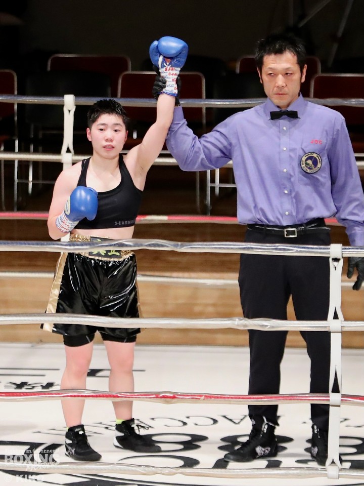 サウスポー同士による一戦は、序盤から激しいペース争いが繰り広げられる中、山中がプレスをかけてワンツーを好打。最終4回に山田の左ストレートを浴びたが、山中が振り切った。