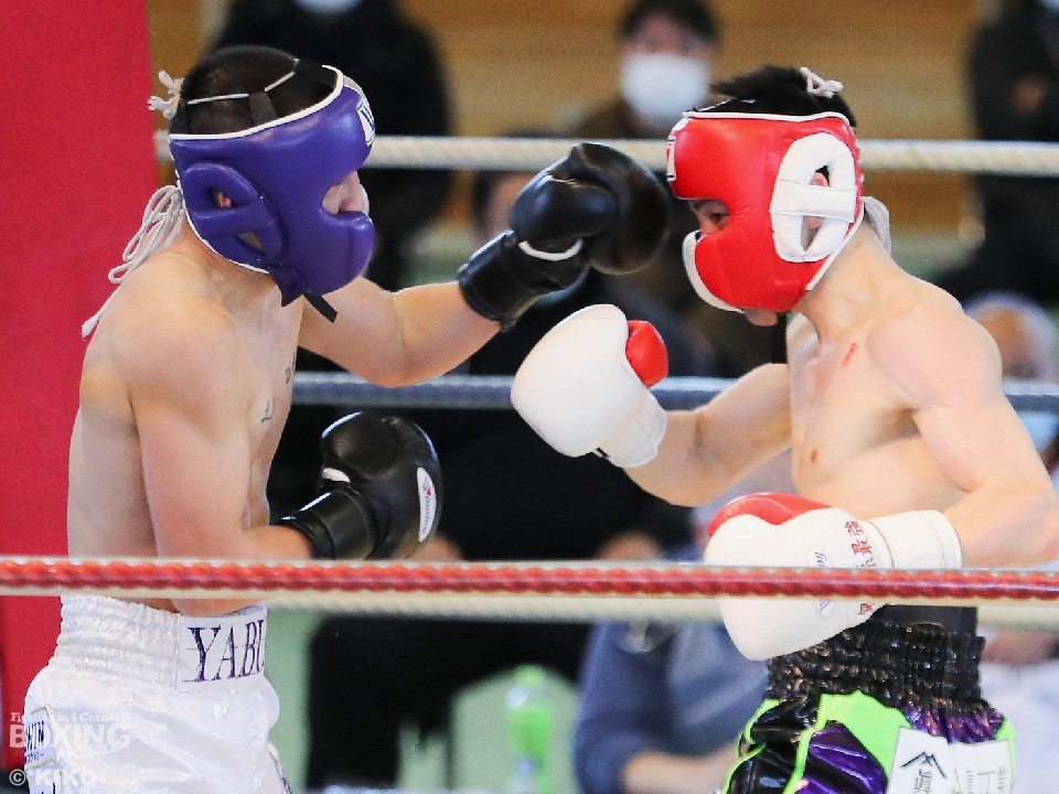 矢吹が長いリーチを活かしジャブで組み立てると右アッパー、右ストレートをヒット。阿久井はプレスをかけながら強弱をつけたコンビネーションを返した。2回、阿久井は左ボディから右ストレートをねじ込むが矢吹も負けじとパンチを返して試合さながらの緊張感を作り出した。ハイレベルな攻防にラウンドが終了するたびに拍手が沸き起こった。