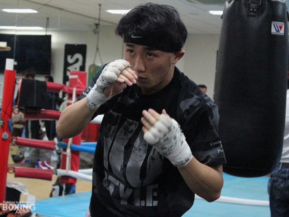 横浜市内の所属ジムで取材に応じた松本は、進化した姿を見せると気合いを入れた。