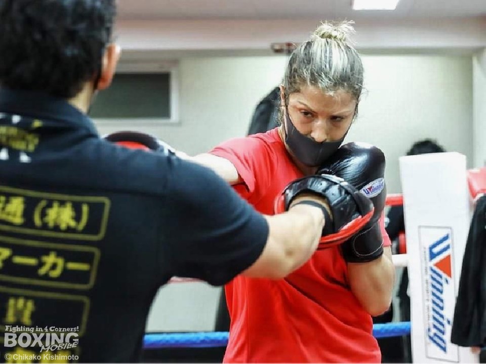 練習では、ミットをめがけて力強い右ストレートを打ち込み、ディフェンス面を強化していた。フェデリカは「会社の人も見に来てくれるので、熱い試合をして何かを伝えられたら」と意気込む。インタビュー中は終始、ニコニコしていたフェデリカだったが、リングに上がると鋭い眼光で練習に打ち込んでいた。