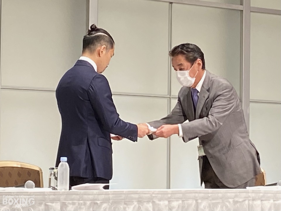 JBC(日本ボクシングコミッション)永田有平理事長とWBO世界スーパーフライ級チャンピオン井岡一翔(Ambition GYM)が12日、東京ドームホテルで会見を開いた。