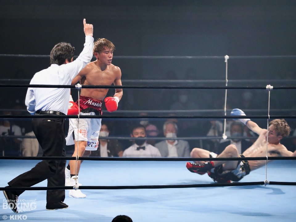 サウスポー谷口が初回に左ストレートでダウンを奪うと、ワンツー右フックでダウンを追加。3回にもワンツーで3度目のダウンを演出した。万事休すかと思われた一道だが、ここから右ボディで動きを止めると、右ストレートを振り抜き起死回生のダウンを奪う。4回、一道はロープに詰めて連打を浴びせると、レフェリーが試合をストップした。3度のダウンを奪われた一道が、大逆転KO勝ちで日本ランキング入りを確実とした。