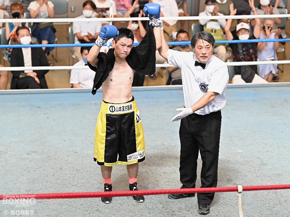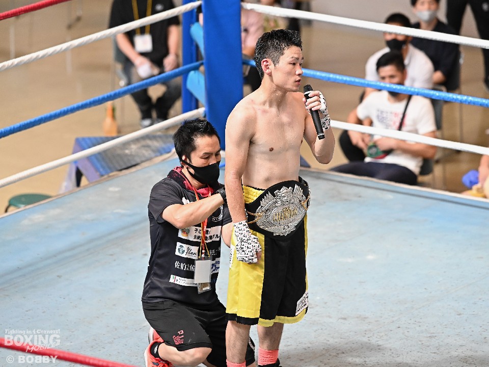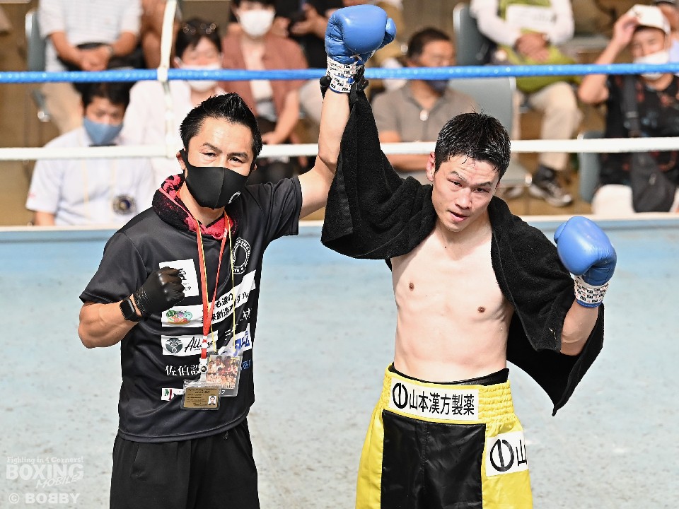 2014年9月の試合を最後に一度ボクシングから離れた大場は、薬師寺ジムでトレーナーとして選手を指導していた時期がある。奇しくもその時の教え子である2020年全日本ウェルター級新人王の能嶋宏弥(25=薬師寺)もこの日、セミファイナルに出場し、岡田翔真(24=姫路木下)に初回KO勝ちした。
