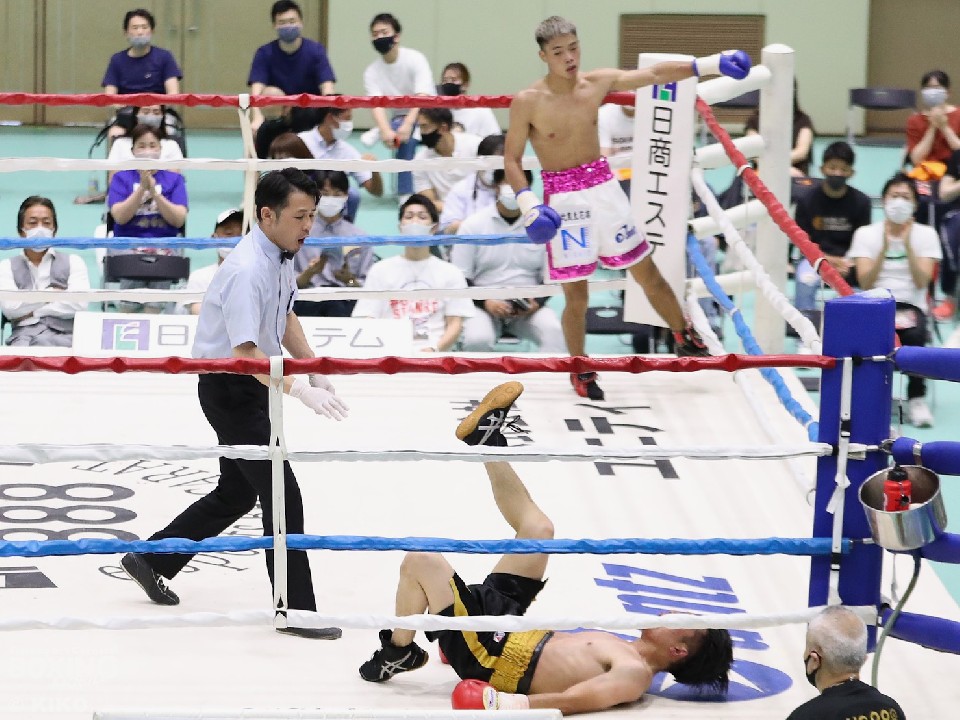 サウスポー同士の一戦は、初回から穴口がステップを刻みながら上下のコンビネーションを決めてペースを掌握。高田の前進を距離で外すと、3回に左ストレートでダウンを先取。再開後、再び左ストレートでキャンバスに沈めた。