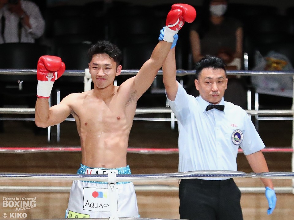 応援に駆けつけた西谷に「おめでとう」と祝福されたという宮は「これからも倒すボクシングを目指していく」と今年の新人王戦の主役の座を狙う。