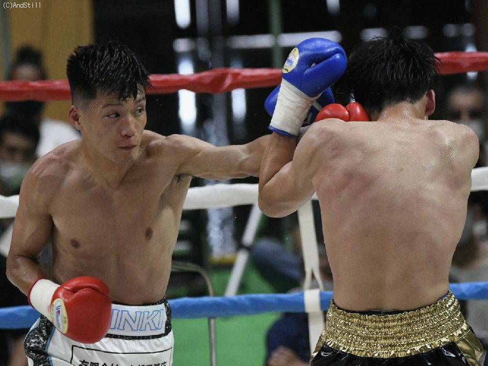 サウスポー奥本がスピードを活かした攻撃で仁平を返り討ちにした。序盤から奥本はサイドに回り込んで左ストレートをねじ込みペースを掌握。前に出てくる仁平の打ち終わりを狙いポイントをピックアップした。6回、仁平は右ボディで反撃したが、奥本は最後までパフォーマンスを落とすことなく判定勝ちした。