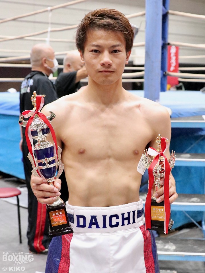 敢闘賞は、フライ級の森野大地(28=フュチュール)が選ばれた。塩崎晃大(21=アポロ)と拳を交えた森野は、サウスポースタイルからグイグイと攻め込むと、初回終了間際に右フックを決めてダウンを演出。2回に左ストレートで立て続けに倒し試合を終わらせた。
