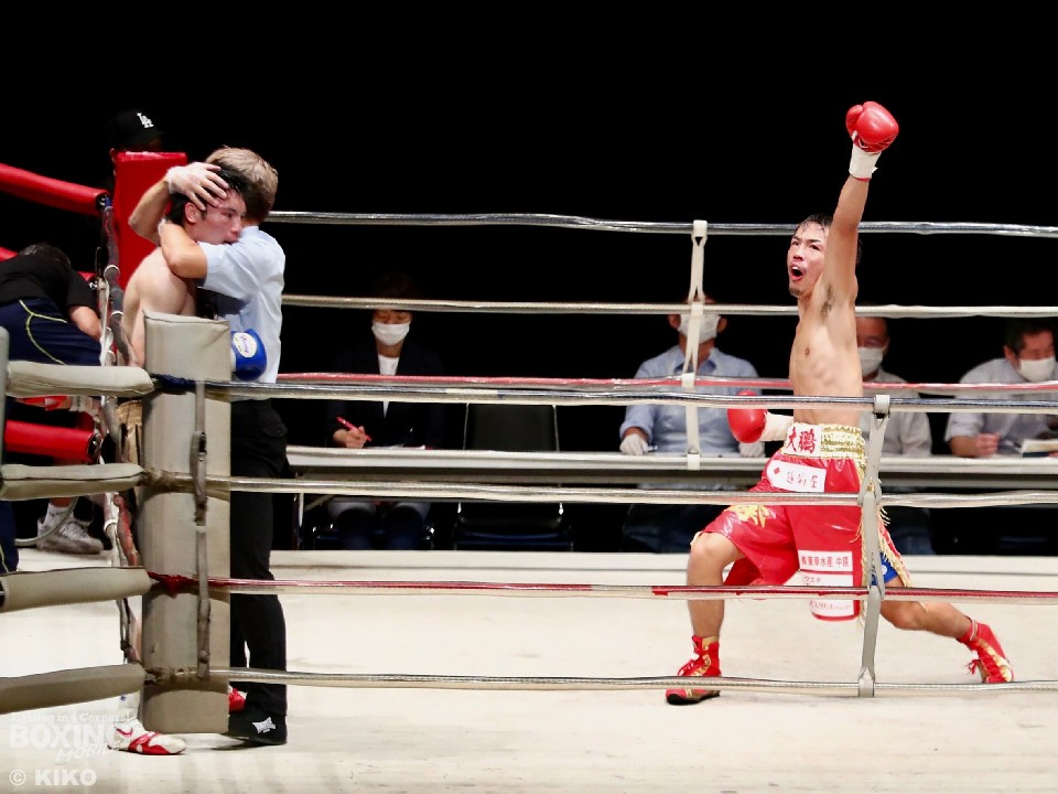 初回は、大里がジャブを軸に丁寧に組み立てたが、2回に小西の右ストレートを浴びてヒヤリとさせた。それでも4回にワンツーでガクッと腰を沈めさせるとロープに詰めて連打で攻勢。防戦一方になったところでレフェリーが試合をストップした。