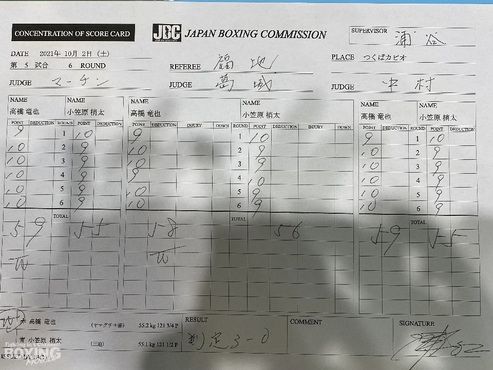 緊急事態宣言が解除されて最初のボクシング興行を迎えたこの日、つくばカピオで開催された「ダイナミックヤングファイト」は5試合行われたが、出場した10名のボクサーのうち、半分の5名がプロデビュー戦のリング。コロナ禍の影響で、高橋と小笠原のメインイベントのリングを含めて全試合、観客は声援の代わりに大きな拍手で選手達にエールを送った。