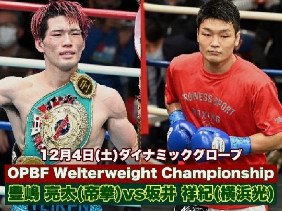 来月4日にはウェルター級のチャンピオン豊嶋亮太(25=帝拳)がランキング5位でメキシコからの逆輸入ボクサー坂井祥紀(30=横浜光)の挑戦を受ける。