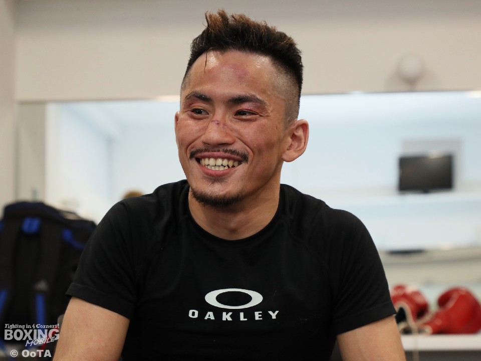 移籍初戦を勝利した酒井は「前に出てこられたら相手のペースになるので、アグレッシブに攻めた。フェイントを仕掛けたら引っかかったので左フックが当たるなと思った。落ち着いて試合ができたし勝ったので100点です!」と満面の笑みを浮かべた。