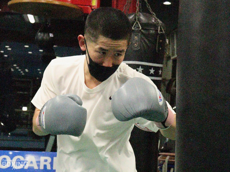 「自分の得意な右ストレートを磨いてきた。調子が良く向井さん(向井寛史トレーナー)と取り組んできたことがスパーリングでも出せるようになってきた」と話すと、「地元(高知県)から両親も観戦に来る予定なので誰もがわかる勝ち方をしたい」とKO勝利を約束した。