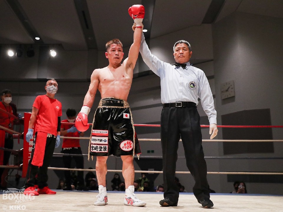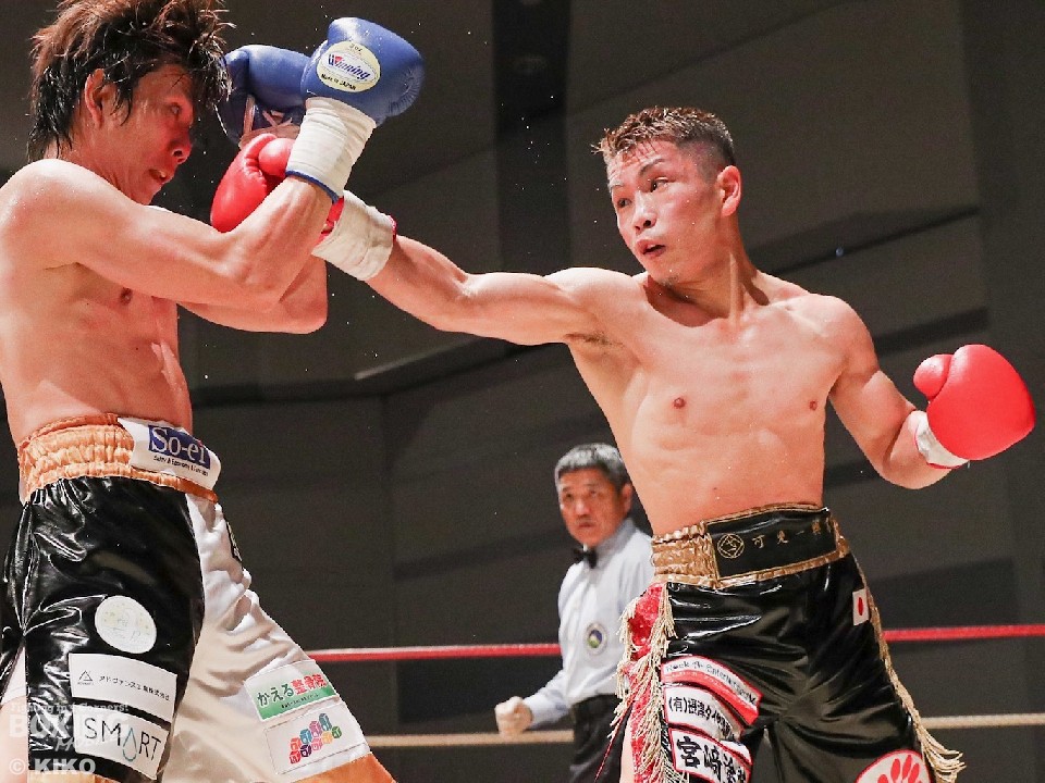 セミファイナル、スーパーバンタム級8回戦では岸根知也(28=ミツキ)と三宅寛典(33=ビッグアーム)が対戦した。