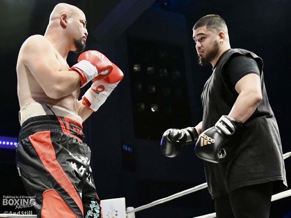 アマチュア5冠の但馬ブランドンミツロ(27=3150FC)が16日、メルパルクホール大阪で開催された「3150ファイトVOL.1」で元OPBF東洋太平洋クルーザー級王者の西島洋介氏(48)とエキシビションマッチを行った。