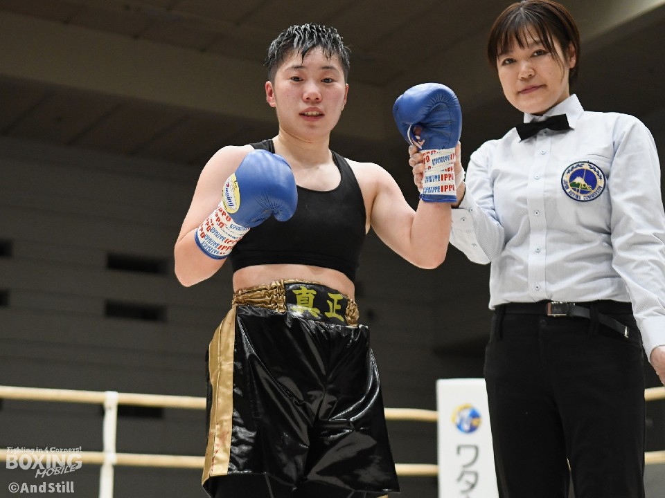 元世界王者の山中竜也氏の妹で日本アトム級7位の山中菫(やまなかすみれ/20=真正)が18日、エディオンアリーナ大阪(大阪府立体育会館・第2競技場)で開催された「REAL SPIRITS.77」に出場。女子アトム級6回戦で同級4位の樽井捺月(30=山木)と対戦した。