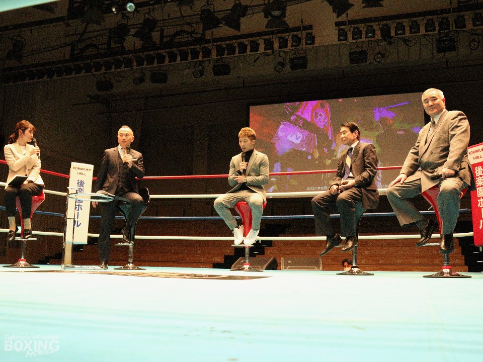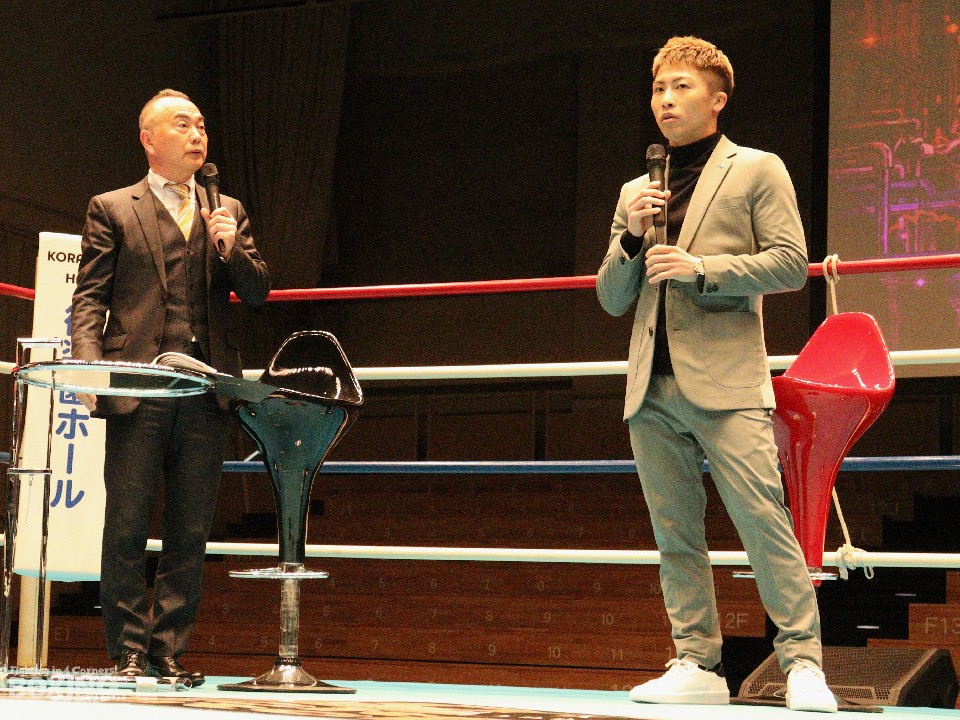 イベントでは、昨年6月に行われたマイケル・ダスマリナス(比)戦と12月のアラン・ディパエン(タイ)の試合映像を見ながら試合を振り返った。「ドネア、カシメロ、ウォーレンにオファーを出したがまとまらず、ディパエンとの試合が決まり正直、モチベーションは下がった。ディパエン戦は自分との戦いだった」と試合前の心境を明かした。