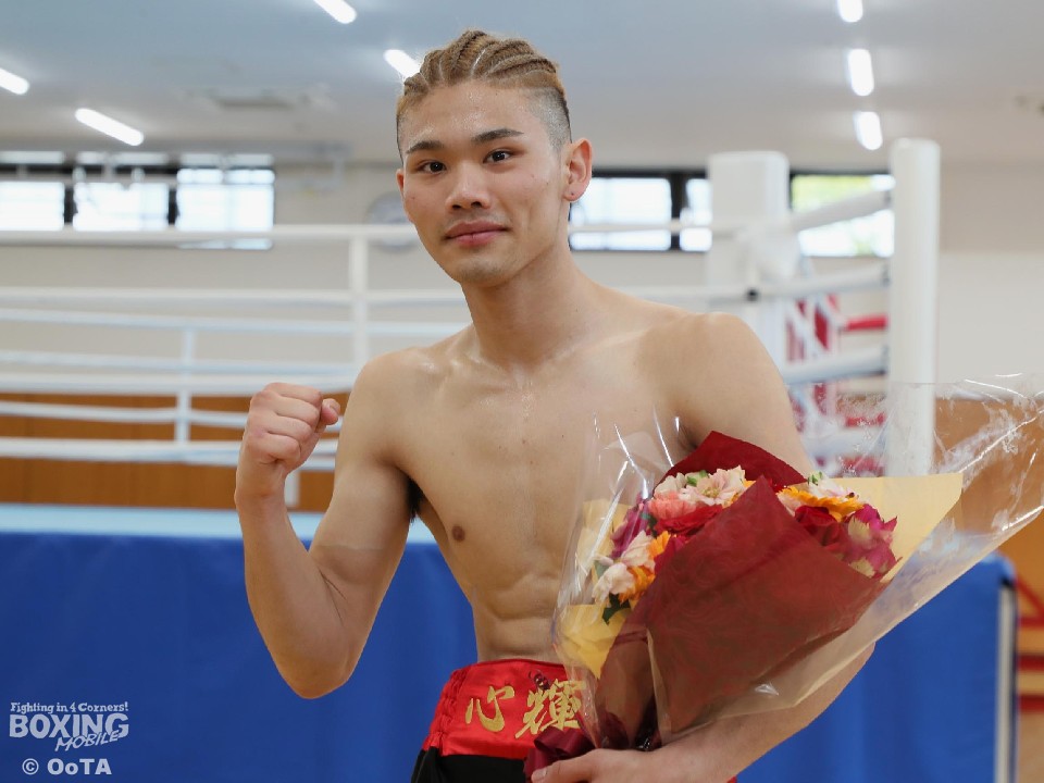 同門の進の初回KO勝ちを目の前で見ていて、刺激を受けたという岡本だが「KOを意識すると力んでしまうので、リラックスすることを心掛けた。自分のボクシングをしたら絶対に勝てると信じて戦った」と心境を明かすと、「ダウンを奪ったパンチは手応えがあった」と笑顔を見せた。