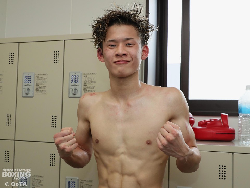 会心のKO勝利を飾った進は「KOは狙っていなかった。右ストレートが当たって、相手がフラついたのでイケると思った。まだ実感がわかないが、本当にうれしい」と声を弾ませた。